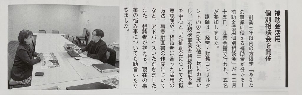 このたび、酒田商工会議所様が発行する会報誌「商工さかた」(2026年1月5日発行・Vol.616)に、2025年12月15日に開催した「補助金活用 個別相談会」の様子が掲載されました。